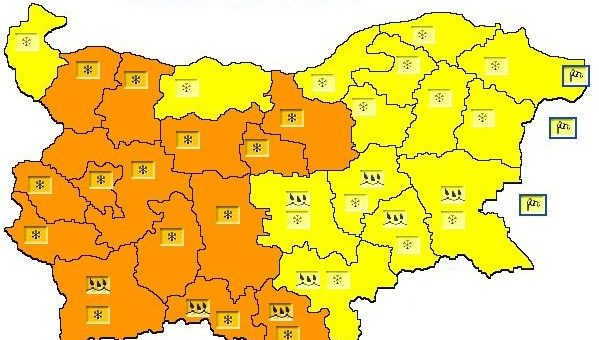 През нощта с умерен и временно силен северозападен, в Източна България североизточен вятър ще нахлува студен въздух. Валежите от дъжд ще обхванат страната, като в Северна и Западна България бързо ще преминат в сняг и ще започне да се образува снежна покривка. Утре в цялата страна вятърът ще се ориентира от североизток, ще е умерен и временно силен и с него ще продължи да нахлува студен въздух. Ще бъде облачно, с повсеместни валежи предимно от сняг, преди обяд в Югоизточна България и крайните югозападни райони от дъжд, но със застудяването и там бързо ще премине в сняг. Ще се образува снежна покривка, в повечето райони между 5 и 10 см; в Предбалкана и Рило-Родопската област, където има условия валежите да са значителни, дебелината на снежната покривка ще достигне до 25-30 см. В Дунавската равнина, Добруджа и Лудогорието, както и по планинските проходи ще има снежни виелици и ще се образуват навявания. Сутринта температурите ще бъдат между 0° и 5°, през деня ще се понижават и към 14 часа ще бъдат между минус 3° и 2°. През нощта срещу неделя от север валежите ще започнат да отслабват и да спират.