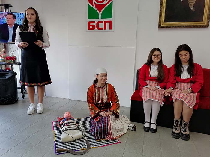 На Бабинден, един от големите народни празници, посветен на жените, които са „бабували“ на родилките, офисът на БСП беше пълен с млади и стари. Възстановката на обредните ритуали в съчетание с увлекателния разказ на  Филип Синапов върнаха гостите в миналото. Филип пренесе присъстващите във времето на неговата покойна баба, която доскоро  е предавала пряко житейски уроци на поколения родопчани. Той разказа с напевния си глас в типичен родопски диалект приказката за раждането и грижата за новия живот.
