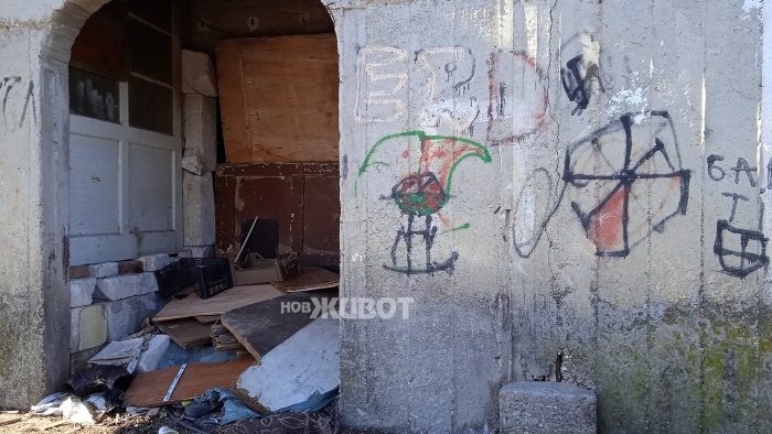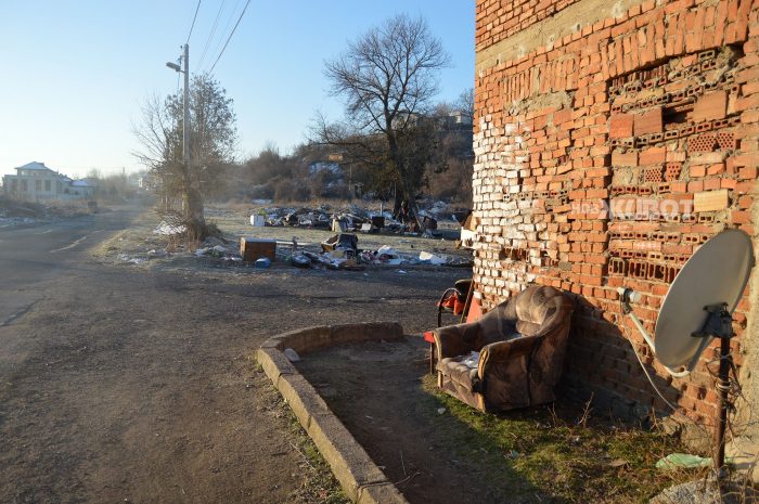 Старата сграда от другата страна на пътя все още е обитаема в едната си част. Другата е останала без врати и прозорци, но пък вътре е пълно с отпадъци, които многобройните кучета разнасят необезпокоявани. Целият пейзаж е изпъстрен с найлови торбички в различни цветове.
