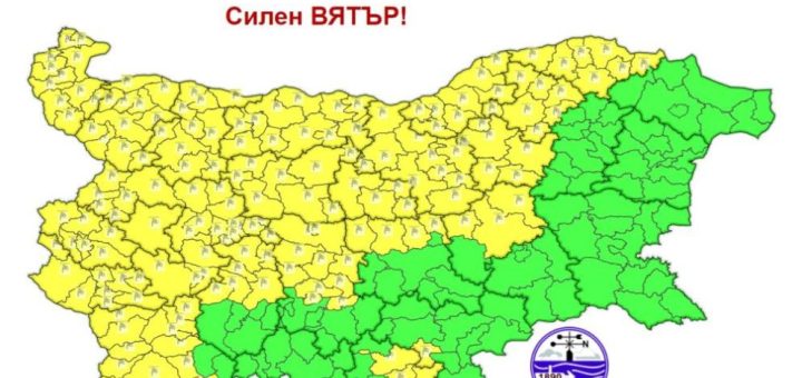 Жълт код за силен вятър е обявен в 21 области у нас в четвъртък, съобщиха от Националния институт по метеорология и хидрология.
