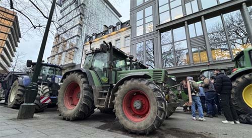 Един от надписите на тракторите гласи: „Вашата чиния е нашата битка“.