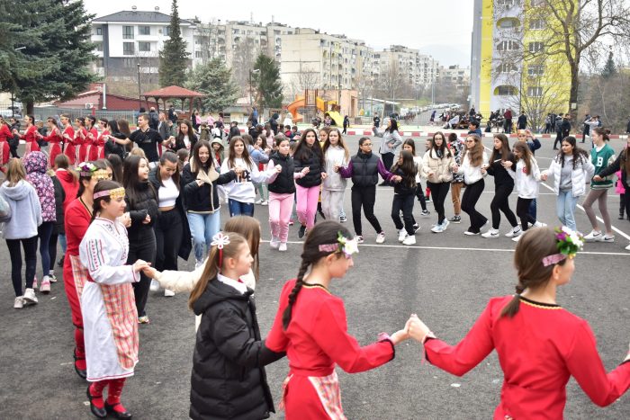 На сцената песничка за Баба Марта изпяха малчуганите от вокалната група на Златка Атанасова, а новосъздаденият танцов състав гимназисти с ръководител Лора Колева изигра традиционни родопски хора. Дълго след края на прескачането на огъня дворът на „Славейков“ се огласяше от народна музика и всеки се включи в хорото.