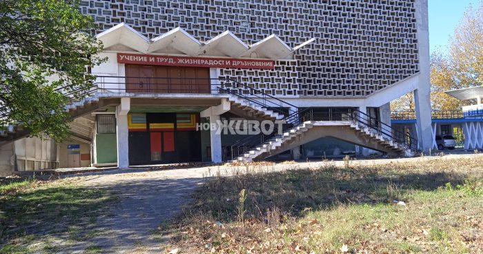 Над входа на спортна зала „Арпезос“ пък от десетилетия четем лозунг, останал от социализма. Така и не се намери стопанин на обекта, който да го махне.