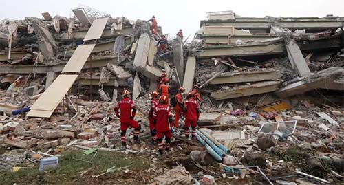 Земетресението с магнитуд 7,7 предизвика срутване на сгради и пропадане на пътища, което сериозно усложни спасителните дейности в засегнатите райони.
