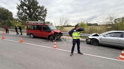 Водачът на буса изпуска завоя и навлиза в насрещната лента, като се удря в движещия се автомобил в посока Узунджово.