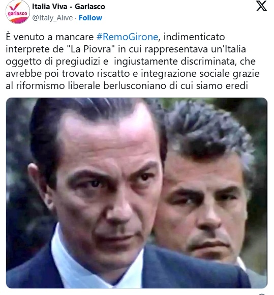 Италианският актьор Ремо Джироне, известен с участието си в мафиотския сериал „Октопод“, почина на 76-годишна възраст, предаде АНСА.