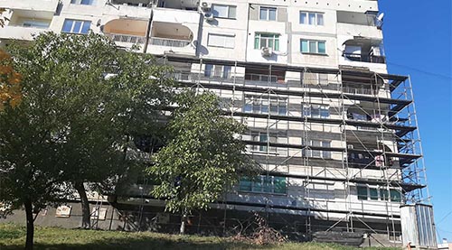 Започна подготовката за саниране и на 45-ти жилищен блок в квартал „Възрожденци“ в Кърджали. В момента се монтира скелето. Доставени са и част от строителните материали.