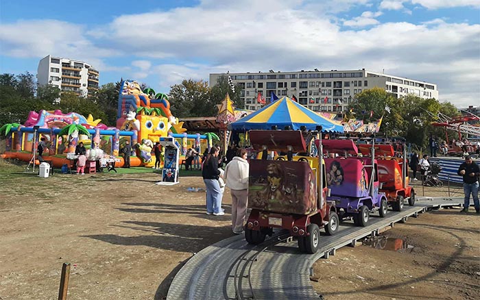 Увеселителните съоръжения са разположени на буферния паркинг в района на Пазара. Те са разнообразни, има и за малки и за големи деца – въртележка, детско влакче, люлки, блъскащи колички, виенско колело, гондоли, надуваем замък, батут и други.
