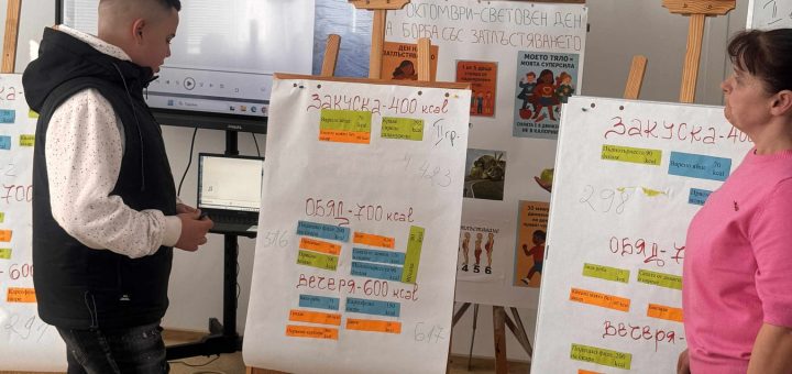 Те съставиха здравословно дневно меню – закуска, обяд и вечеря, съобразено с нужните калории; проведоха „активна пауза“ с упражнения и кратка гимнастика и участваха в забавна викторина „Вярно или грешно“ за правилното и неправилното хранене.