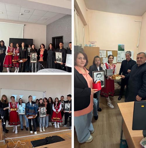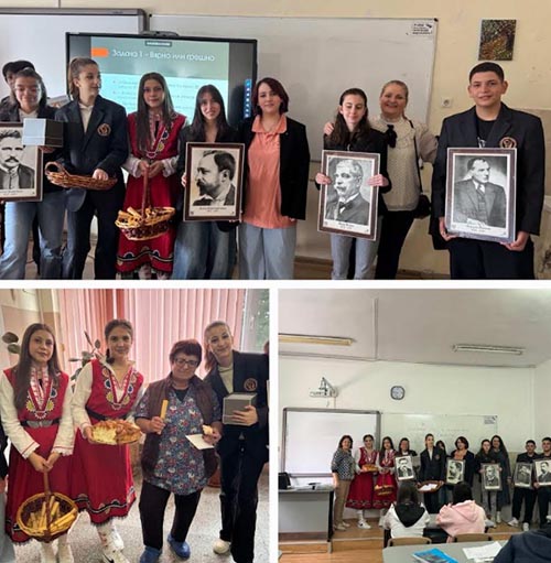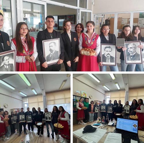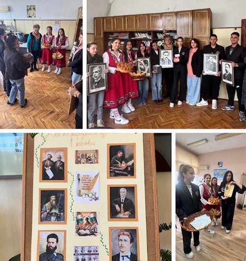 Коридорите на училището се оживиха с пъстри народни носии и усмивки на момичетата ни, които поднасяха пита, по стар български обичай. Подготвените от учениците свитъци с биографични данни за будители, напомниха за труда и вдъхновението на великите българи.