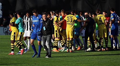 Той падна на тревата, оказана му бе медицинска помощ, а констатацията на двама лекари бе, че има комоцио. Гостите отказаха да продължат играта с резервния си вратар, а реферът Драгомир Драганов сложи край на двубоя.