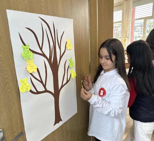 Вторият проектен урок бе посветен на темата „Изработване на седмично меню“ и се проведе под ръководството на Мюзеин Арслан в 4“в“ клас. Учениците създадоха свое здравословно меню, запознаха се с хранителните стойности на различните продукти и обсъдиха значението на доброто хранене. Работата включваше използване на учебници, онлайн ресурси и работни листове, чрез които децата развиха знания за хранителните навици и грижата за здравето. Урокът завърши с рефлексия чрез „Дървото на благодарността“, в което всеки ученик изрази признателност за нещо, преживяно по време на часа. Проектът ще завърши с благотворителен базар за здравословни храни, организиран съвместно с клубовете „Шампиони в доброто“ и „Хелфи“, като събраните средства ще бъдат използвани за закупуване на коледни подаръци за деца със специални потребности. Гости на този урок бяха множество начални учители.