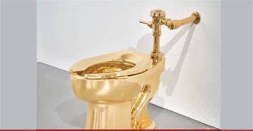 Продадоха за 12,1 милиона долара напълно функционална тоалетна от 18-каратово злато, която е дело на италианския художник авангардист Маурицио Кателан.