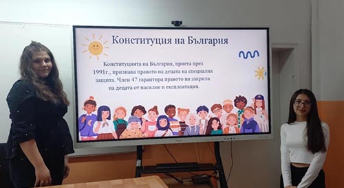 Мелихат Салим, класен ръководител и обществен възпитател към МКБППМН проведе дискусия с учениците от 10.б клас, акцентирайки върху правото на детето на свобода от всички форми на насилие. В хода на срещата бяха разгледани основните принципи на Конвенцията за правата на детето, приета през 1989 г. от Общото събрание на ООН – първият международен документ, който утвърждава човешките права за всички деца.