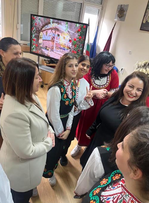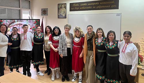 Гостите разгледаха обновените кабинети, след което присъстваха на драматизацията „Кума Берта“ по разказ на Чудомир, изпълнена от ученици от гимназията.
