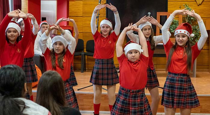 Водещите Рая и Атанас представиха първо коледния танц на малките мажоретки от танцов състав „Мистерия“ с ръководители Тонка Димитрова и Весела Василева. След тях петокласничката Селда Манолова направи своя дебют на сцена със стихотворение за Дядо Коледа. Семих от 4″в“ изпълни коледна песен с подкрепата на танцуващите си съученички, а самодейни състави от 4″е“, 5″б“ и 6″б“ изтанцуваха свои композиции по коледни класики.