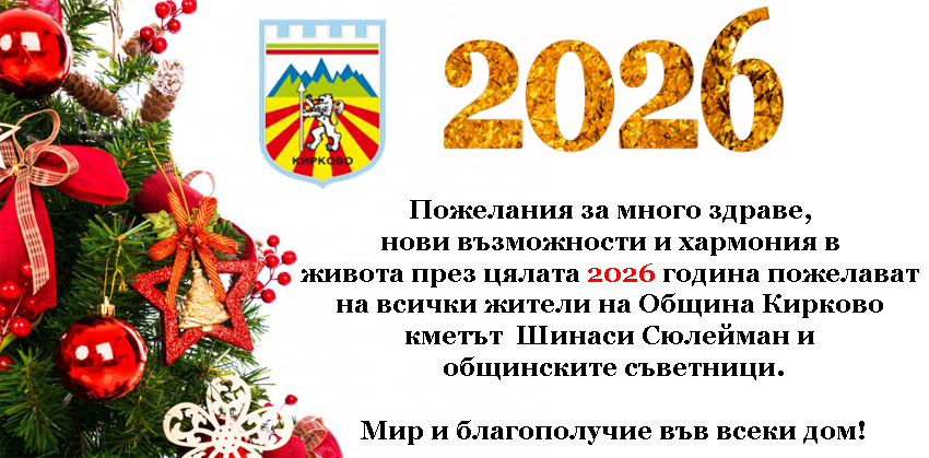 Кметът на община Кирково и общинските съветници: Мир и благополучие във всеки дом! от Денис Делев · Акценти / Крумовград / Новини / Общество / РЕГИОН · 11:20 / 31.12.2025 Споделяне Click to share on Facebook (Opens in new window) Facebook Click to share on X (Opens in new window) X Click to email a link to a friend (Opens in new window) Email