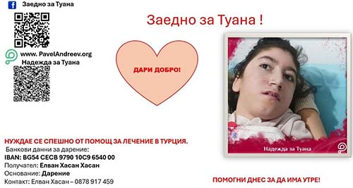 Организаторите и семейството на Туана отправят апел към всички хора с добри сърца да продължат да помагат, за да бъде събрана необходимата сума и момичето да получи шанс за живот.