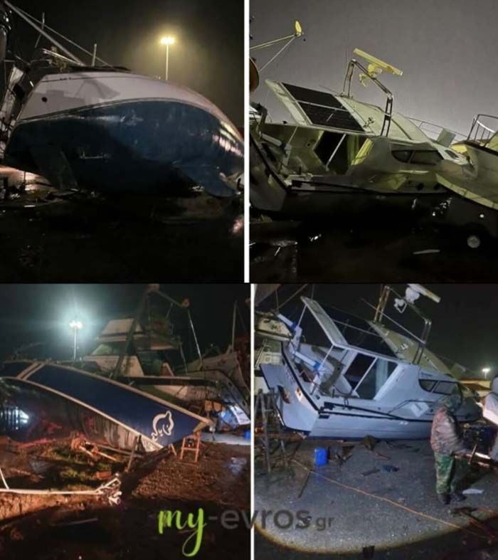Пориви на вятъра, достигащи 154 км/ч, по данни на Националната обсерватория в Атина, повалиха повече от 15 дървета по крайбрежните и централните булеварди на гръцкия град Александруполис, паднаха върху паркирани автомобили или блокираха движението на превозните средства.