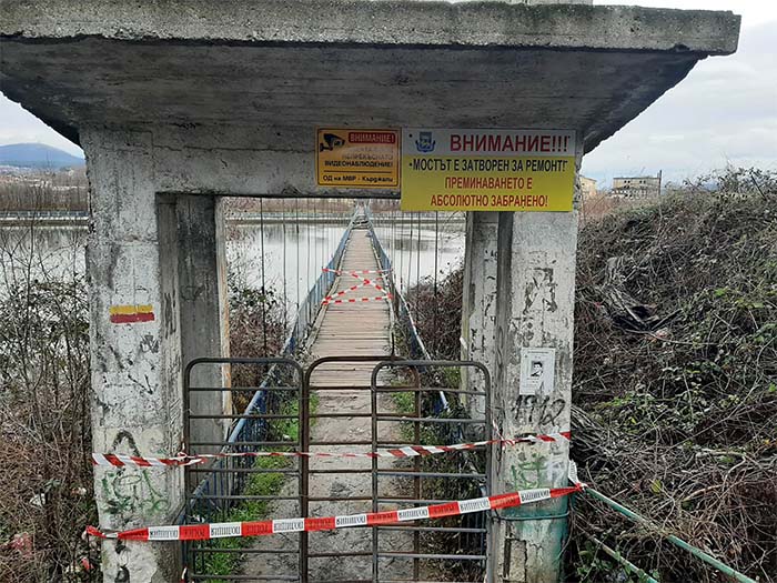 Преминаването по въжения мост в Кърджали е абсолютно забранено. Затворен е за ремонт, се казва в предупредителни табели, поставени в двата края на пешеходното съоръжение. Мостът е най-пряката пешеходна връзка с центъра на града за хиляди жители от квартал „Възрожденци“, които живеят в първите блокове в началото на квартала. Затова те настояват по-скоро да започнат възстановителните работи. Използва се също и от много живущи в централната част на квартала.