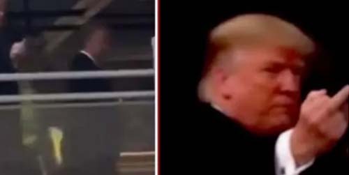 На видеозапис, който се разпространява в социалните мрежи и беше публикуван от уебсайта за светски новини Ти Ем Зет, Тръмп върви по пешеходен мост. В началото на клипа се чува глас, крещящ нещо, което не се чува, а след това президентът на САЩ показва среден пръст в посоката, от която идват виковете.