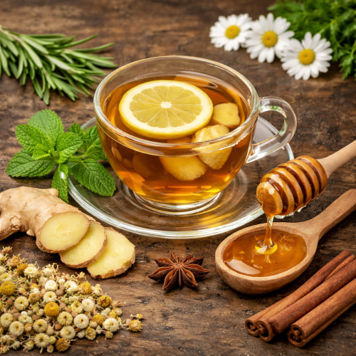 Важно е при настинка и грип да приемате повече топли течности- домашен бульон, билков чай (мащерка, мурсалски чай, мента, лайка, липа, салвия) в комбинация с мед, резен лимон и по желание пресен корен от джинджифил. Хранете се с по-лека храна и осигурете достатъчно сън на тялото си, за да се възстановят вашите сили.