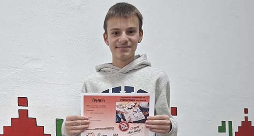 След успешно представяне в първия кръг на националната фаза, той продължава участието си в олимпиадата и в момента подготвя своята разработка за следващия етап, където ще се бори в сериозна конкуренция за класиране напред. Осмокласникът е в паралелка с профил „Предприемачески с интензивно изучаване на немски език“ и работи под ръководството на преподавателката си Кристина Паскалева.