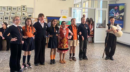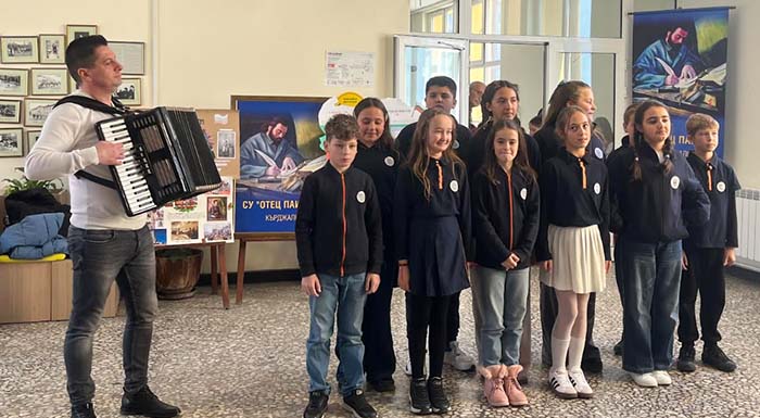 Родопските звънчета при СУ „Отец Паисий“ с вокален педагог г-жа Женя Пейкова изпълниха песента „Гайдини свирят“ със съпровод на гайда в изпълнение на Димитър Стоянов от 5.в клас.