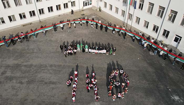 С национален трикольор с дължина 148 метра – колкото са годините от Освобождението на България – ученици и учители от Средно училище „Йордан Йовков“ поставиха началото на честванията по повод Трети март.