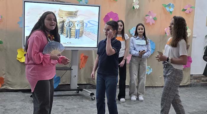 Необичайна образователна инициатива съчета икономика и театър в Средно училище „Йордан Йовков“. Чрез драматизиран разказ ученици от прогимназиален етап представиха пред по-малките си съученици постановката „Въртележка на парите“, която по достъпен и увлекателен начин показа как се разпределят семейните средства.