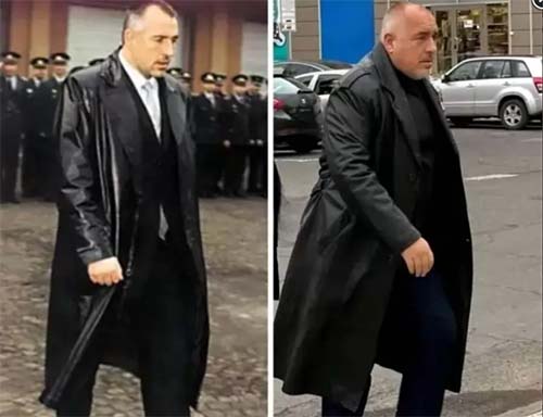 И все пак, ако внимателно проследим визията на политика, ще забележим нещо любопитно. През януари 2017 г. Борисов избира да облече любимото си дълго кожена палто за церемонията по встъпване в длъжност на президента Румен Радев. Разбира се, под шлифера тогавашният премиер носи костюм с риза и сако, както изисква протокола на заемания от него пост. Но може да предположим, че изборът на тренчкот за официалното събитие е израз на непризнаване на новоизбрания държавен глава – дали е така или не, можем само да гадаем, но фактът, че пет години по-рано, през януари 2012 г., когато Росен Плевнелиев полага клетва като президент, Борисов носи далеч по-елегантно вълнено палто с двойна яка, е красноречив.