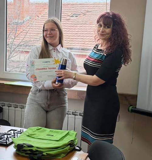Със своята впечатляваща художествена интерпретация Стилияна Тихова успя да се открои сред участниците и да заслужи призово място. Нейната рисунка се отличава със силна визуална символика и въздействащ колорит, чрез които младата художничка отправя важно послание за опазването на водните ресурси и отговорността на обществото към тях.