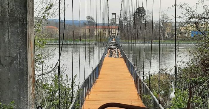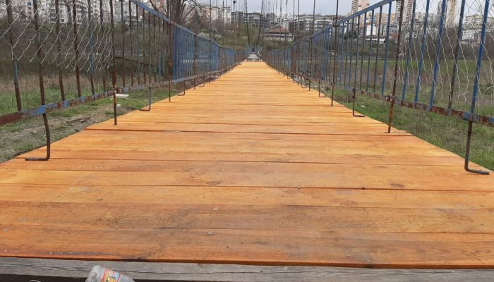 Съоръжението, което свързва централната част на града с квартал „Възрожденци“,  бе затворено на 8 януари тази година. Тогава бурен вятър наруши целостта му. Бяха изтръгнати, счупени и разместени част от дъските. Преминаването по него стана опасно и невъзможно.