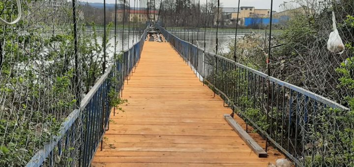 Съоръжението, което свързва централната част на града с квартал „Възрожденци“,  бе затворено на 8 януари тази година. Тогава бурен вятър наруши целостта му. Бяха изтръгнати, счупени и разместени част от дъските. Преминаването по него стана опасно и невъзможно.