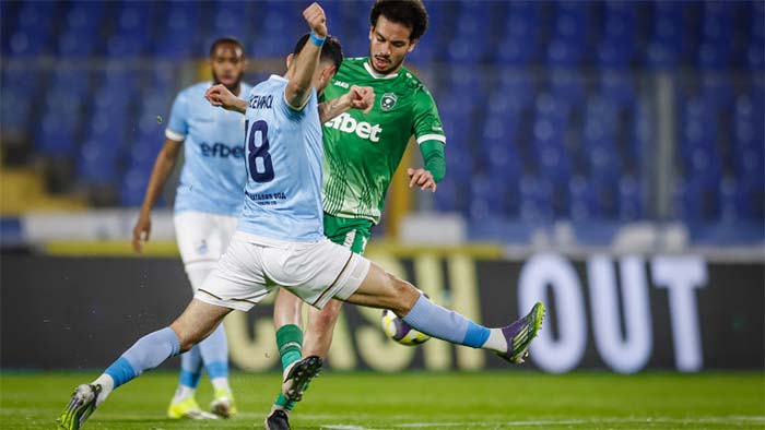 В 36-ата минута Педро Нареси изведе добре Ерик Маркус в наказателното поле, а той отправи мощен шут, но Господинов показа отличен рефлекс и спаси.