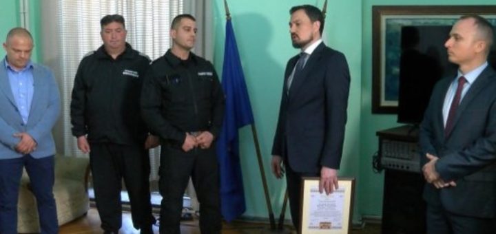 Областният управител на Бургас Добромир Гюлев връчи благодарствена грамота на младши инспектор Ивелин Арабаджиев от Граничен полицейски участък – Малко Търново за проявена смелост при спасяването на десетки жени и деца от Украйна – пътници в автобус, който пропадна в дере на път за Турция.