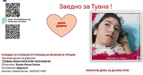 Oнлайн дарение чрез платформата PavelAndreevORG: https://pavelandreev.org/bg/ campaign/nadejda-za-tuana